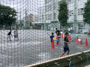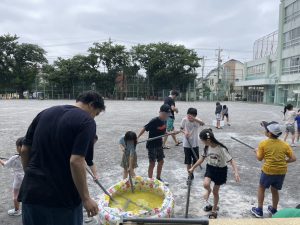 そして、水鉄砲を作り終えたら試射を兼ねて校庭で遊びます!
